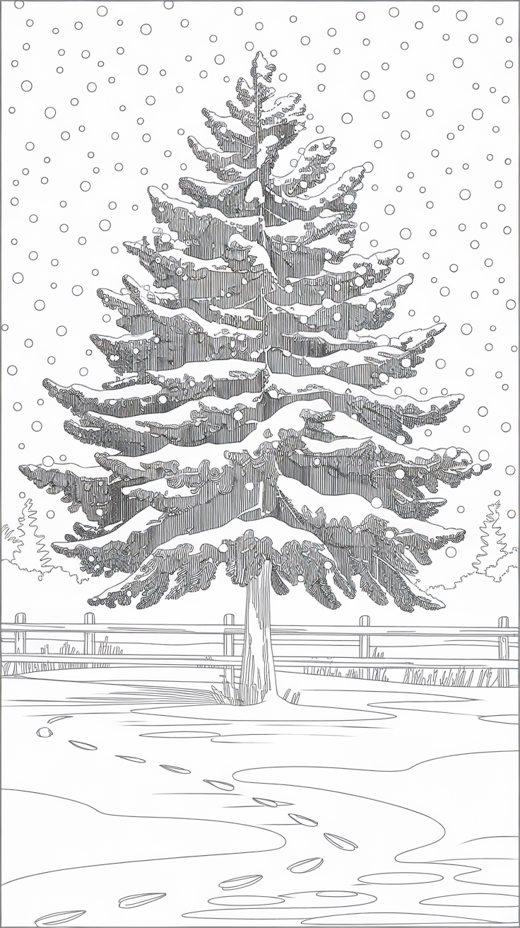 Combine holiday joy with winter vibes! These coloring pages feature Christmas trees, lights, gifts, and Santa in the snow.