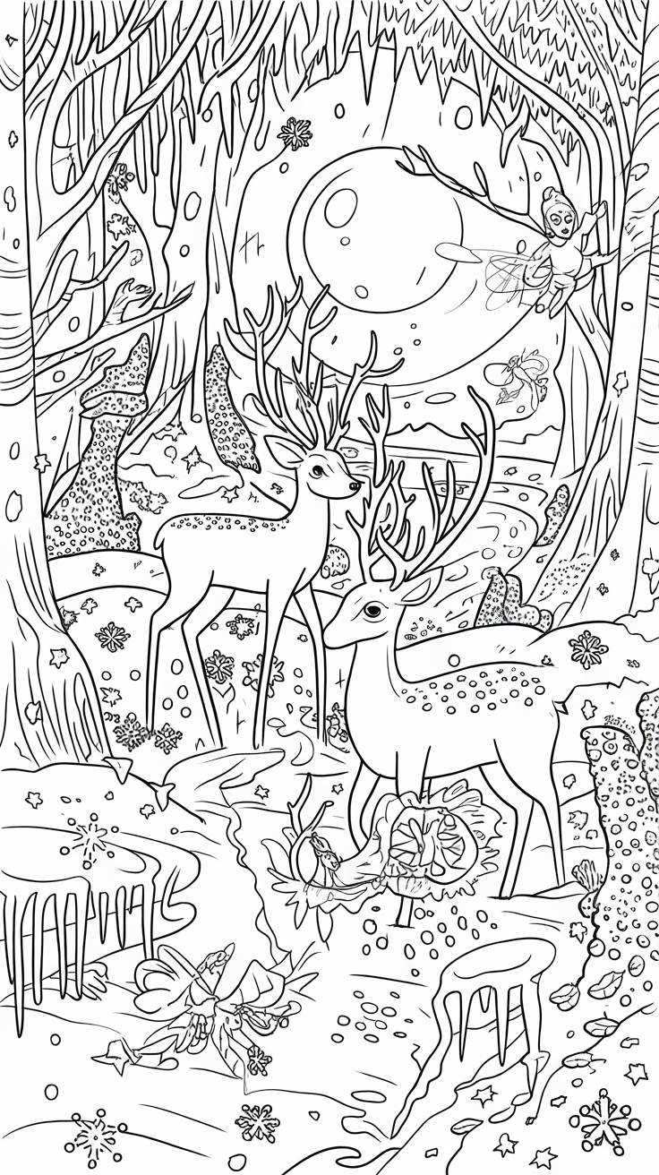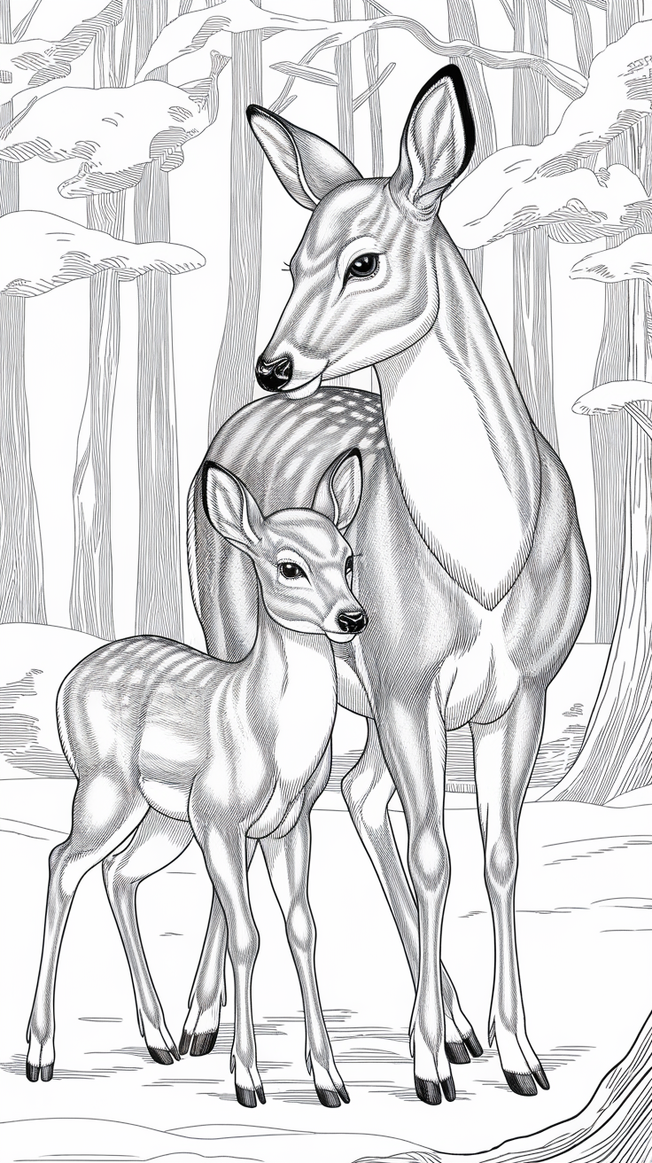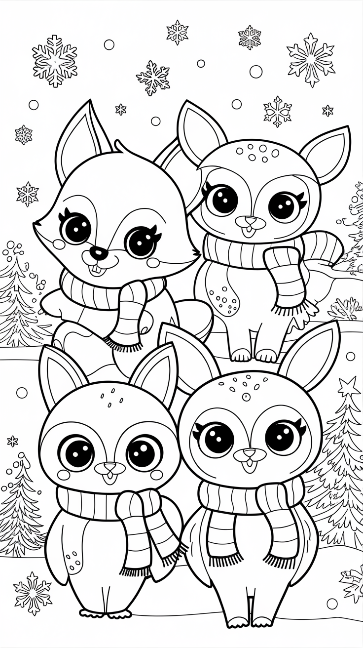 Bring the beauty of nature to life with winter animal coloring pages. Explore cute deer, polar bears, owls, and foxes surrounded by snowy forests.