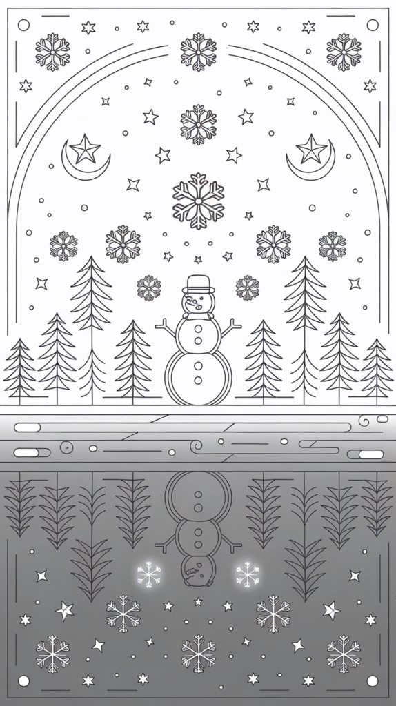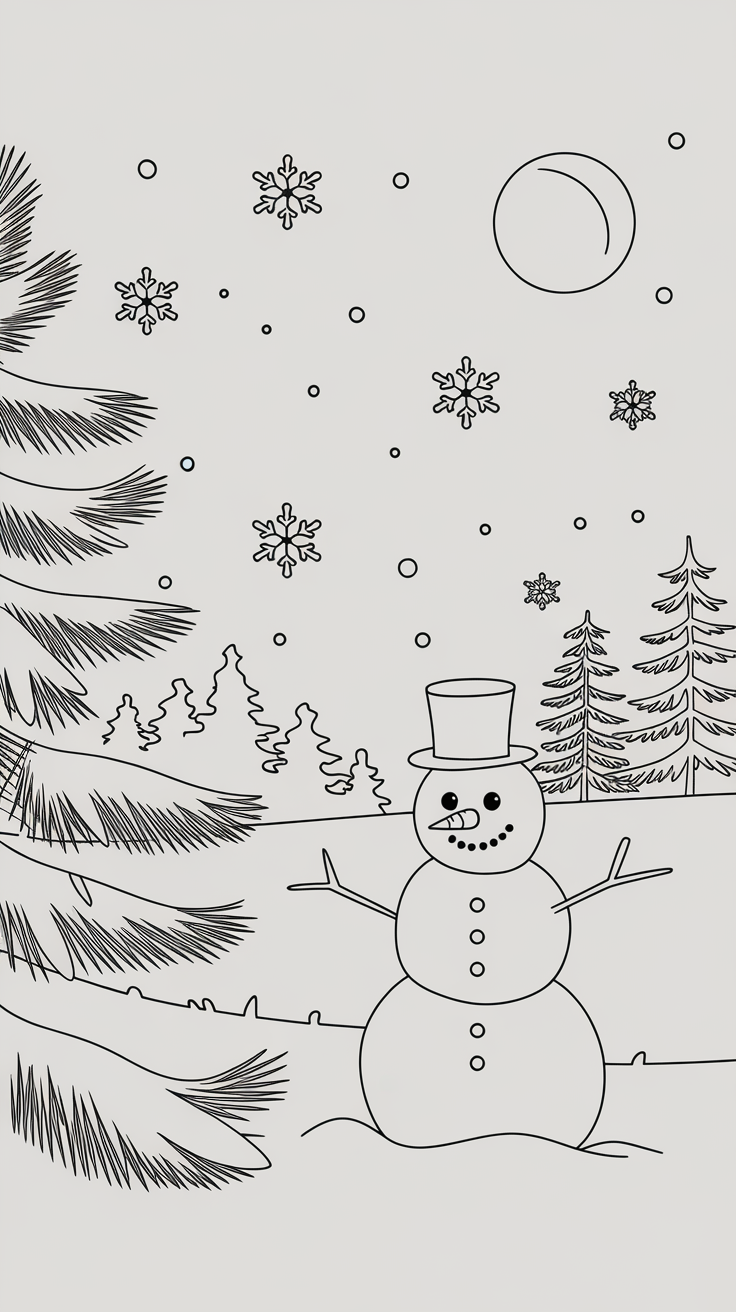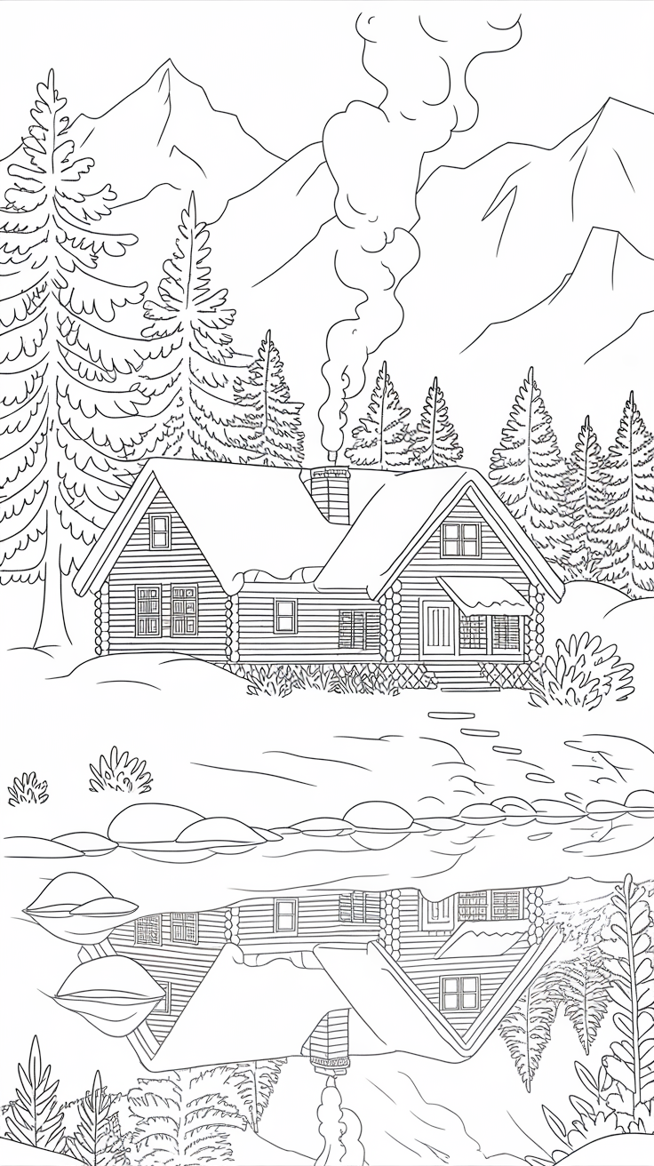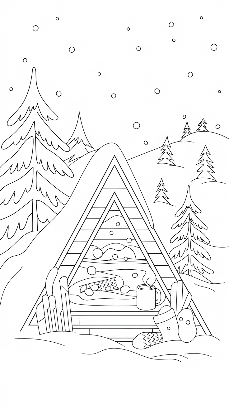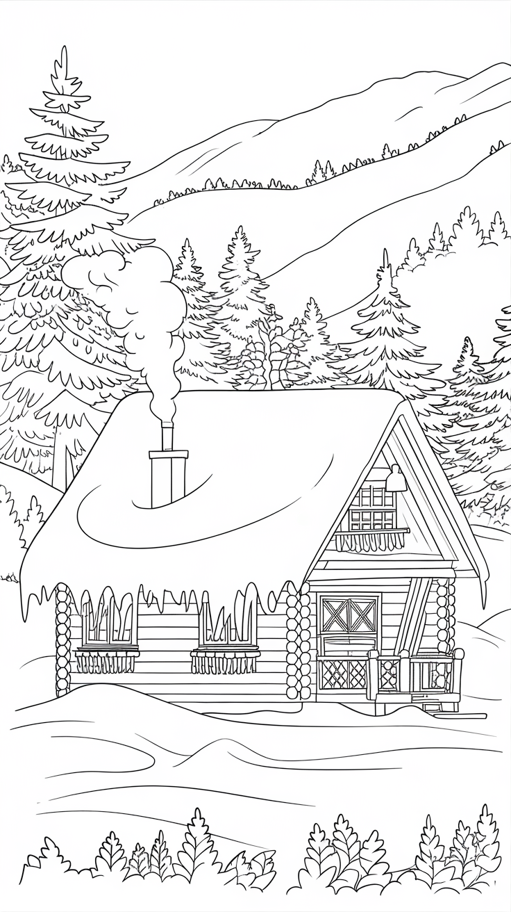 Adults love relaxing coloring pages too! Try intricate mandala snowflakes, cozy cabin scenes, or aesthetic winter line art.