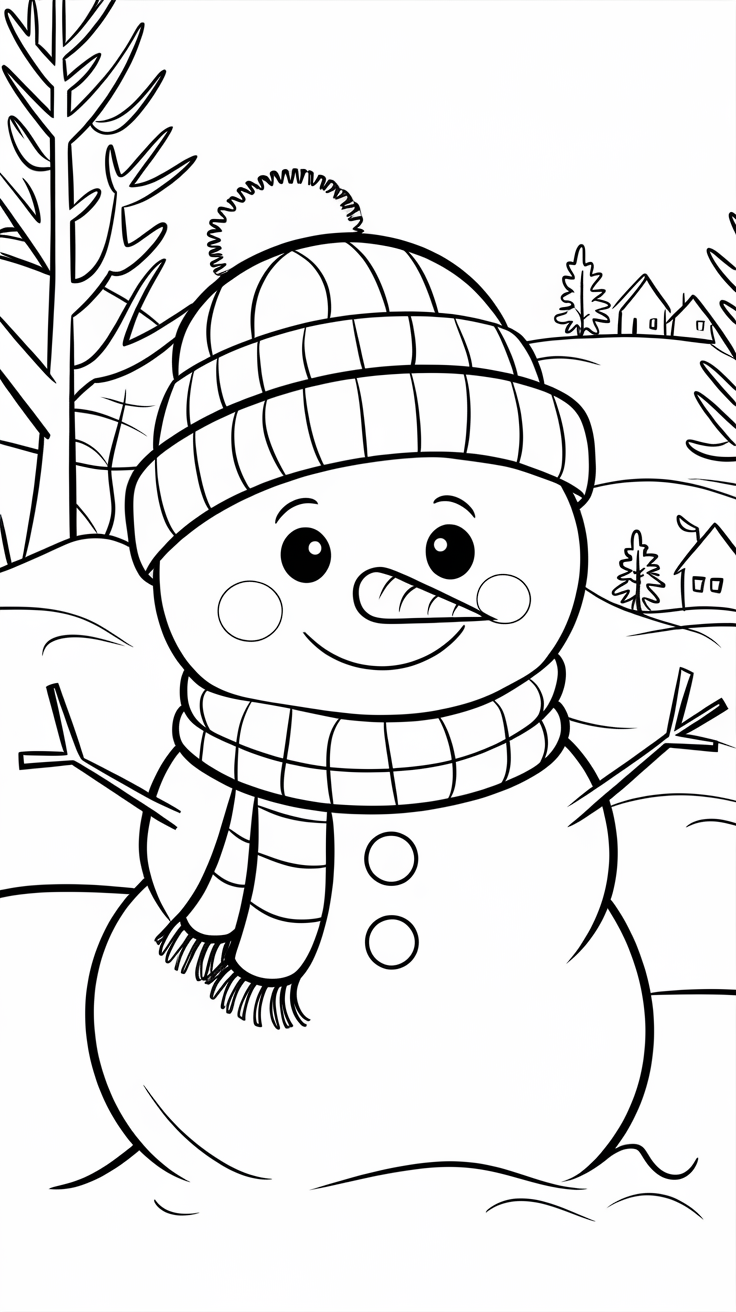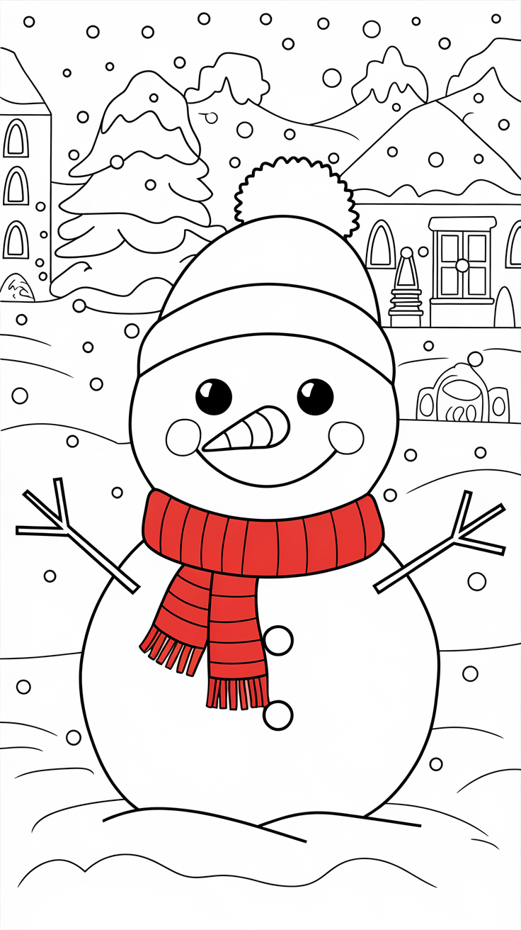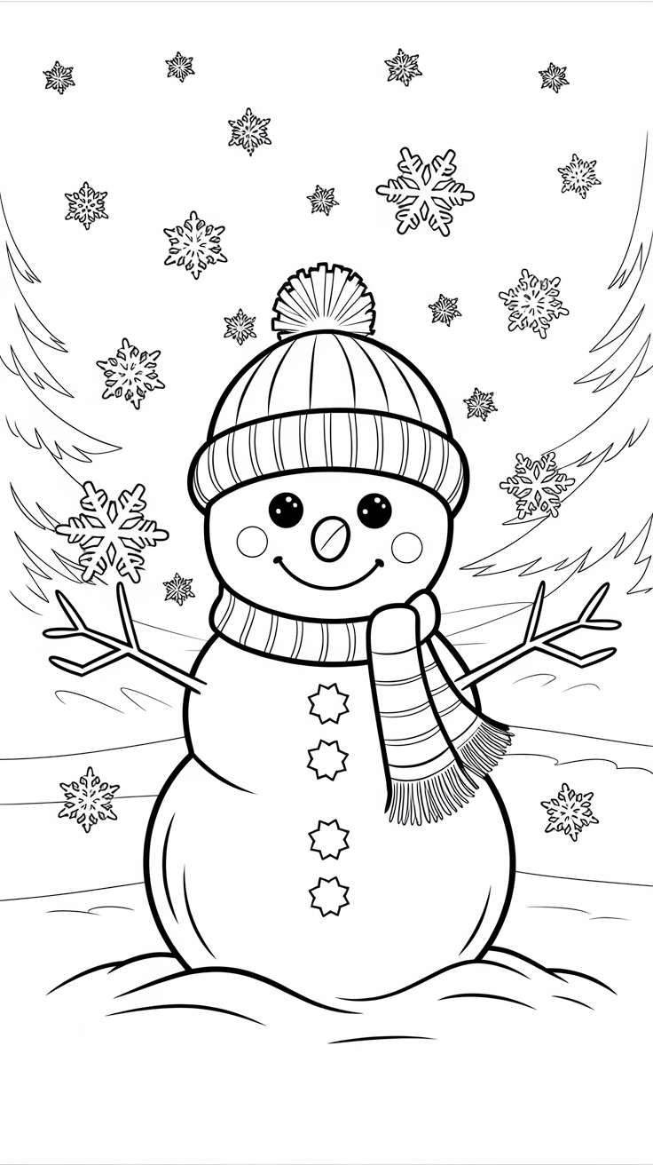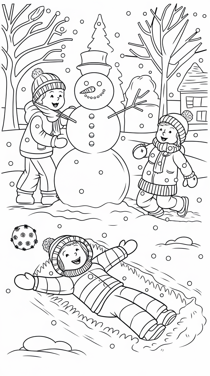 🌨️ 1. Cute Winter Coloring Pages for Kids