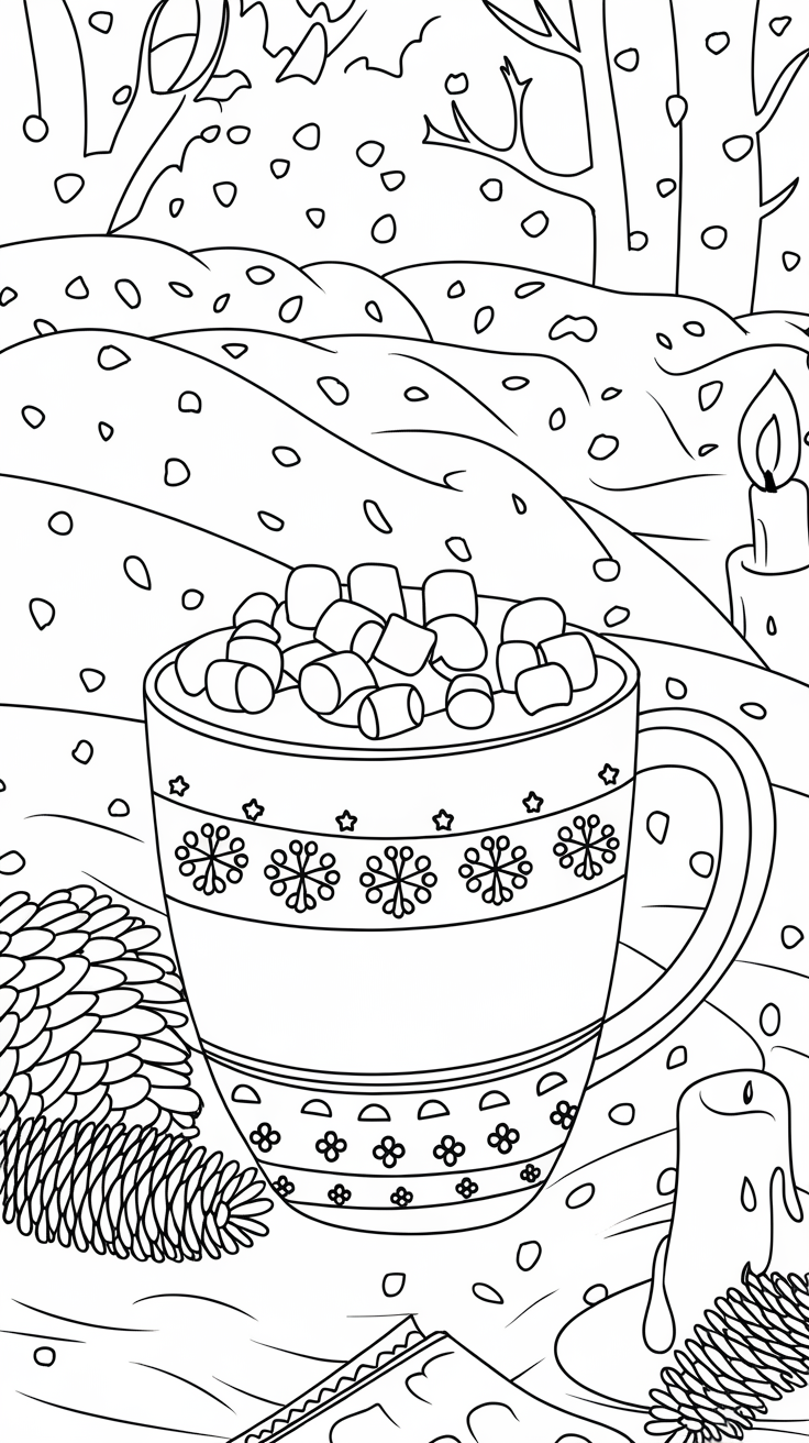 ☕ 4. Aesthetic Winter Coloring Pages for Adults