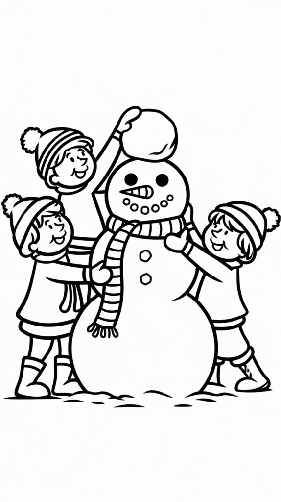 : winter coloring pages for kids, snowman coloring page, easy winter art for preschool.