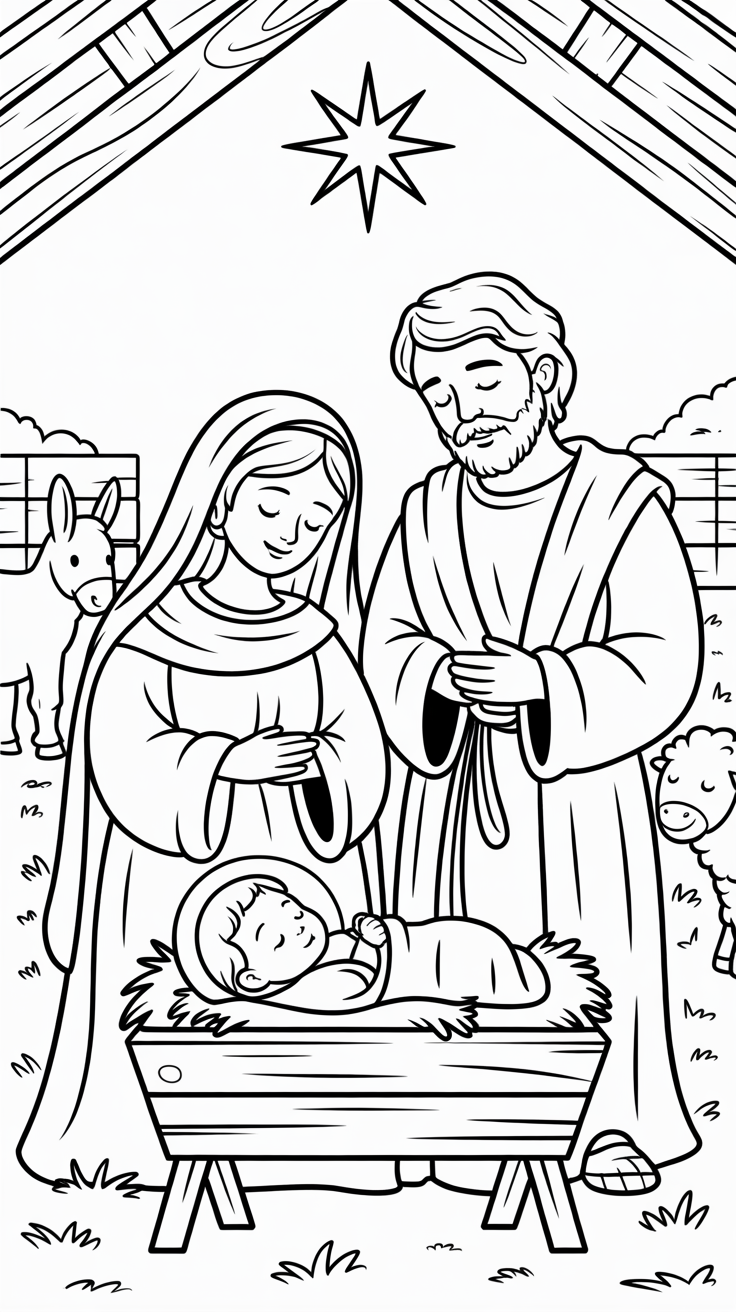 ⭐ Nativity Coloring Pages – Free Printable Christmas Coloring Sheets for Kids