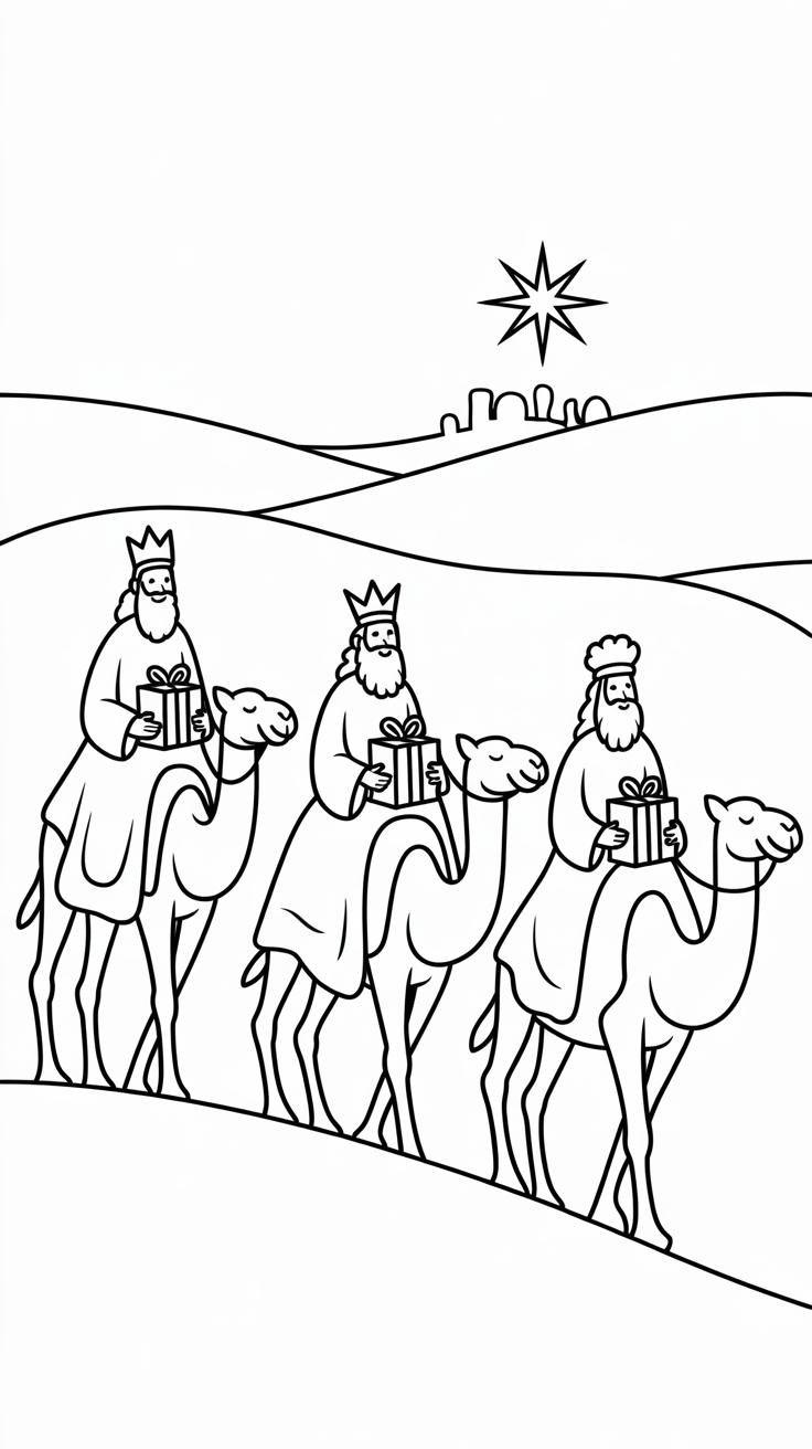 ⭐ 3. Three Wise Men Coloring Page