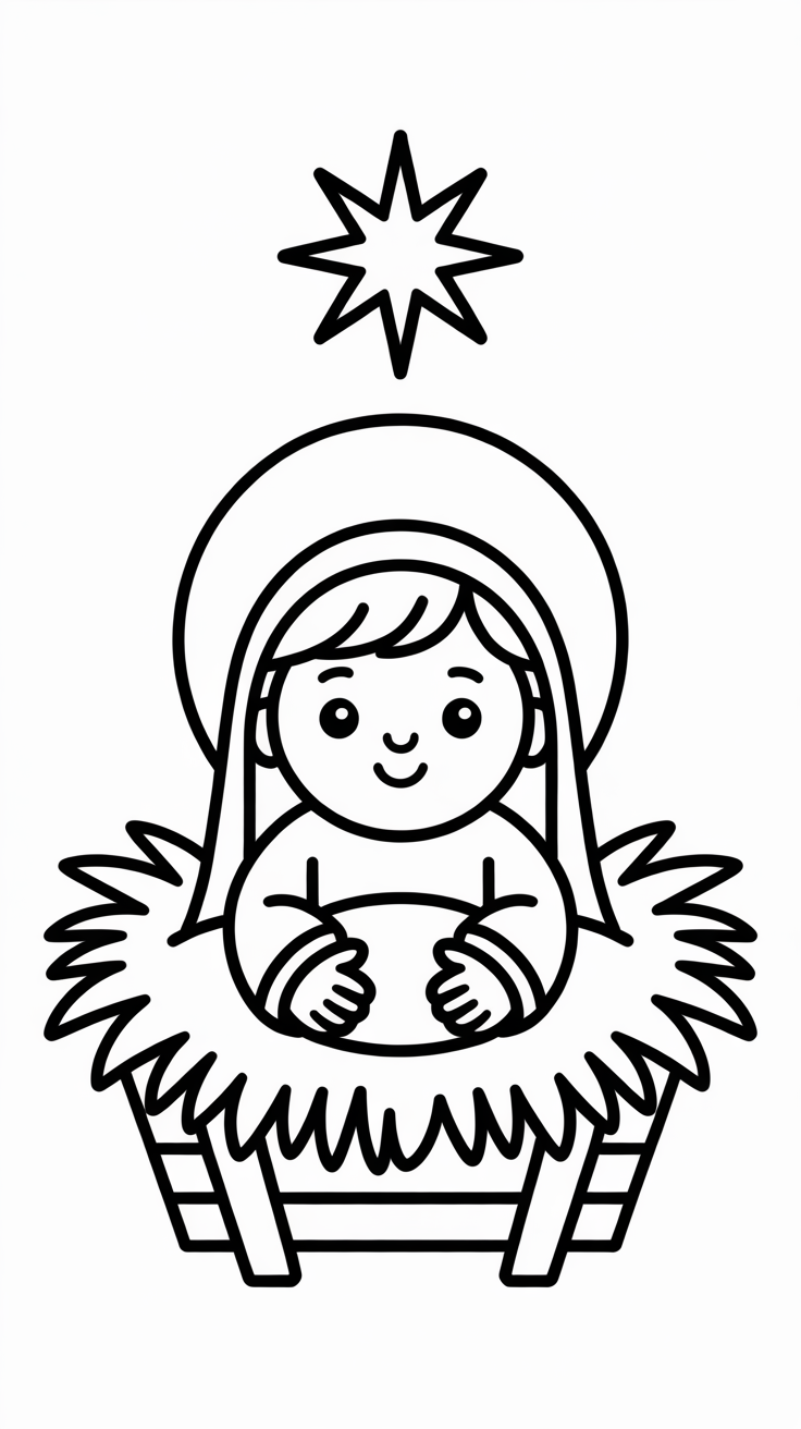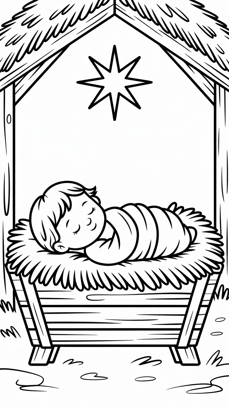 ⭐ 1. Baby Jesus in the Manger Coloring Page