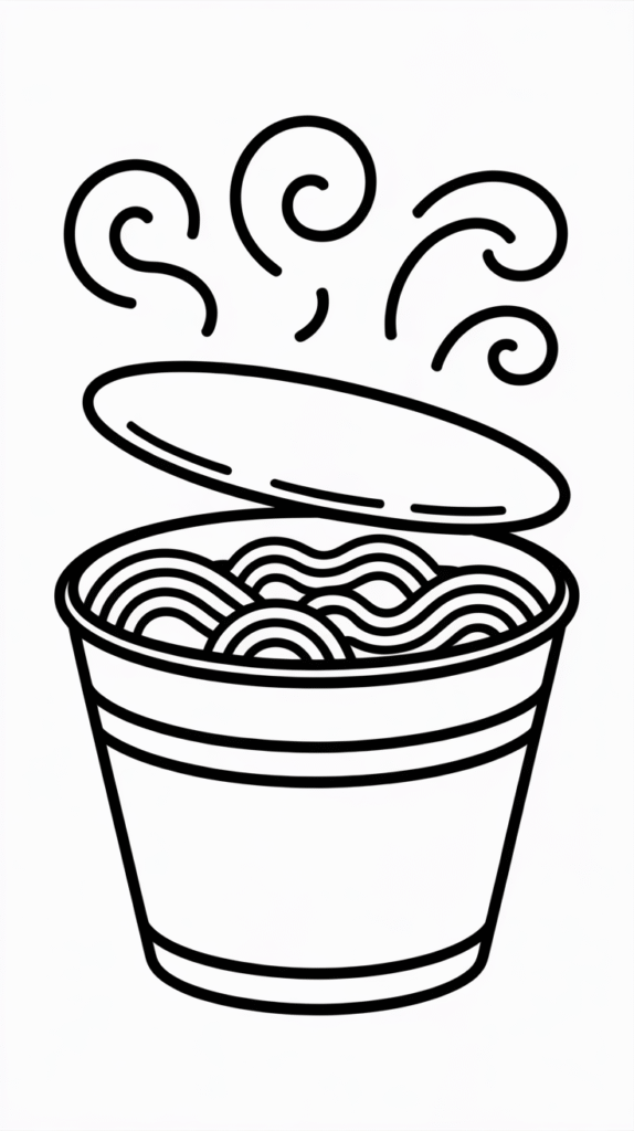 If your kids love fun food-themed coloring sheets, they will adore this Ramen Coloring Page for Kids! Ramen noodles are popular in anime, cartoons, and kawaii food art—making them a favorite printable for children of all ages. This free ramen coloring page is designed with bold black outlines, simple shapes, and a cute style that’s perfect for easy coloring.