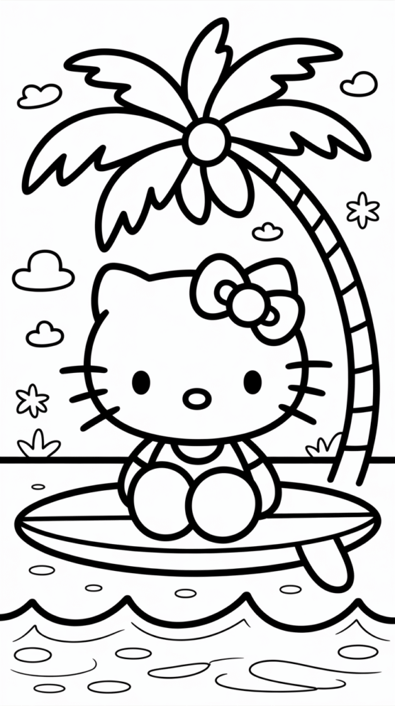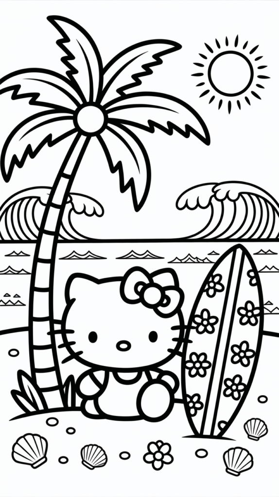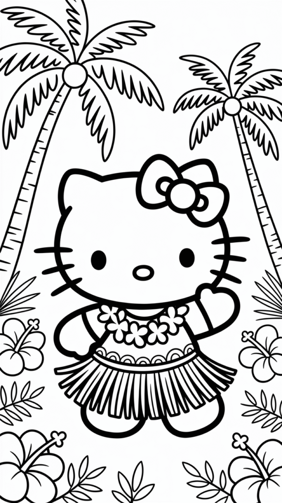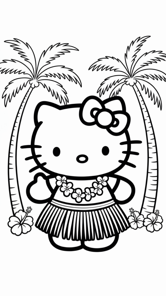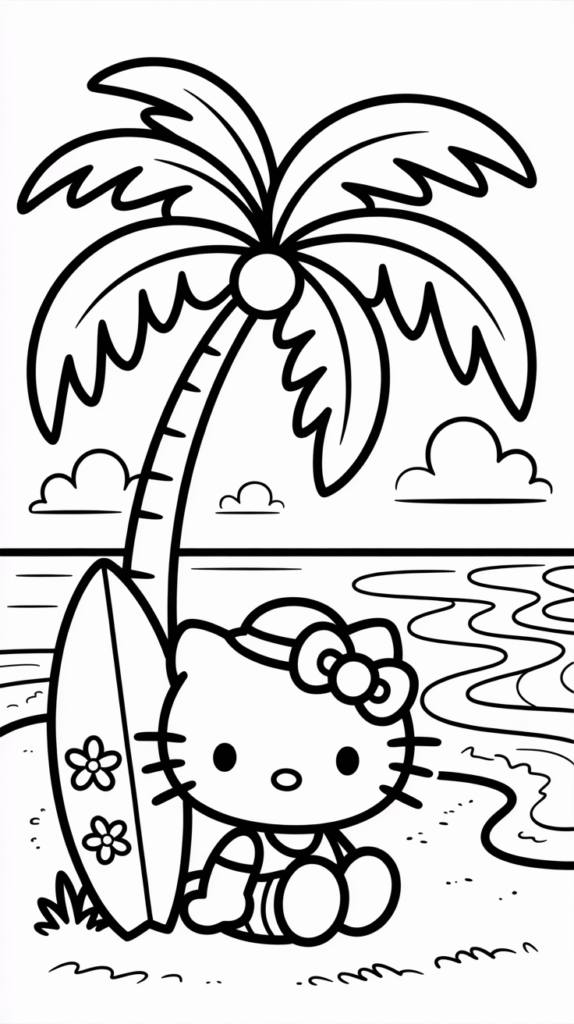 Trending Keywords: Hawaiian Hello Kitty, beach coloring pages, tropical kawaii art