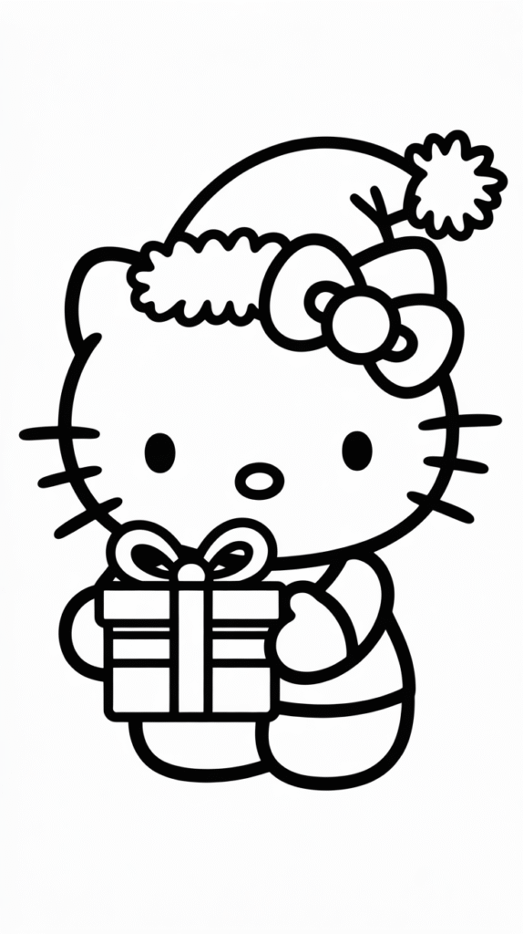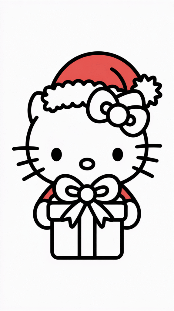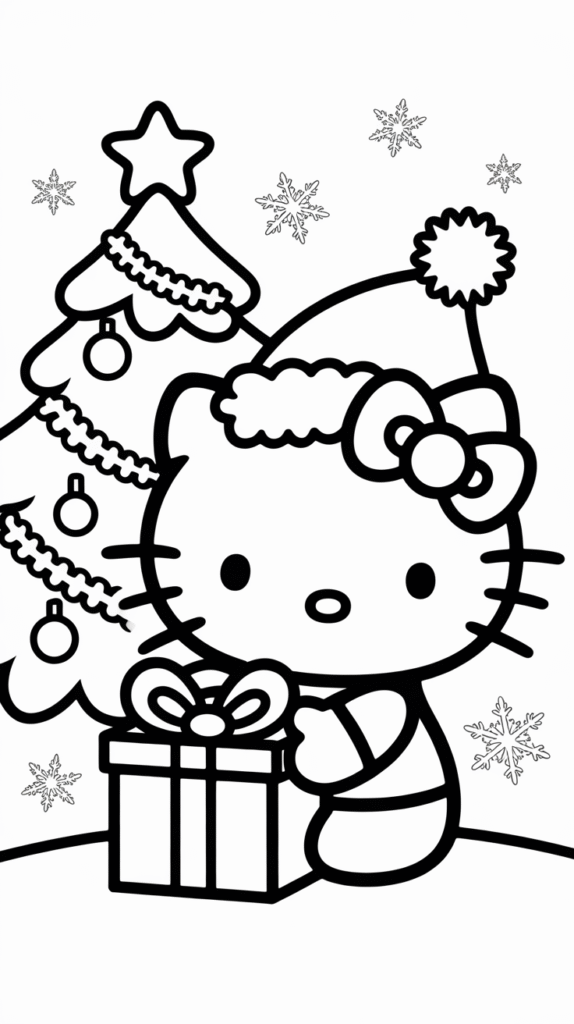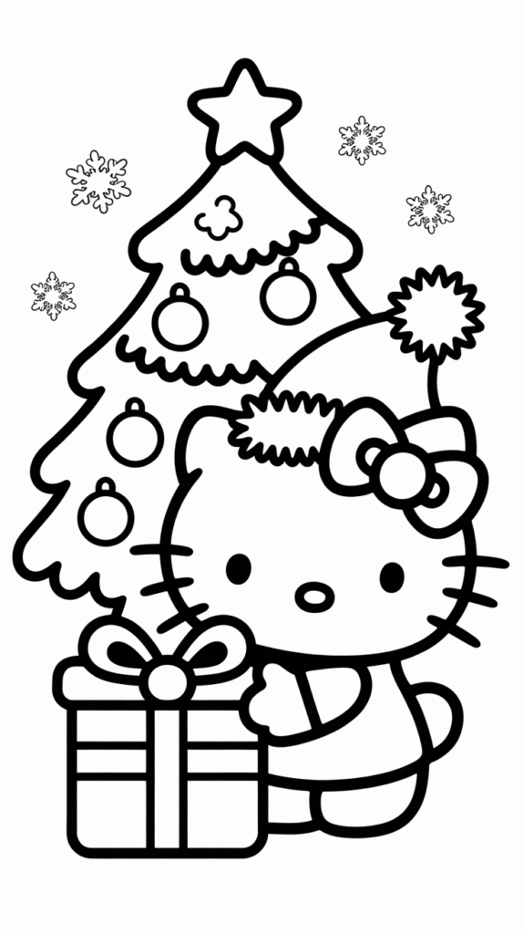 ๐ŸŽ„ 2. Christmas Hello Kitty Coloring Pages