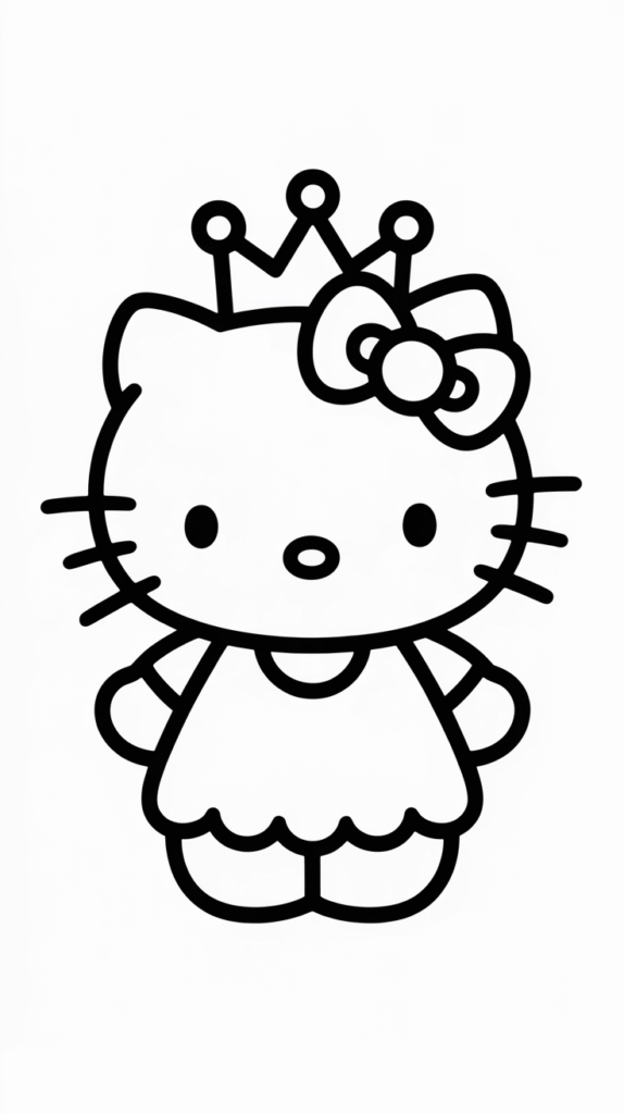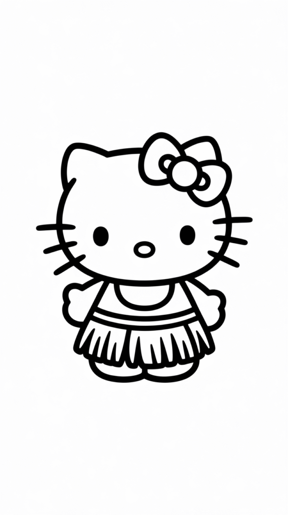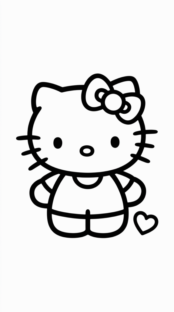 For toddlers and preschoolers, simple black-and-white Hello Kitty outlines are perfect for easy coloring. These help kids practice coloring neatly and recognizing shapes.