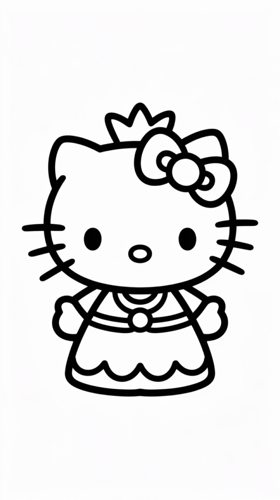 ๐ŸŒธ 3. Princess Hello Kitty Coloring Pages