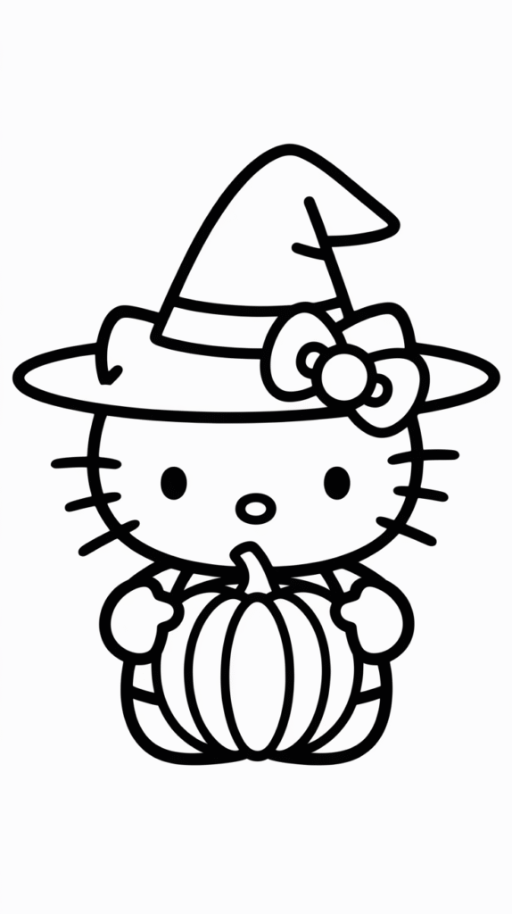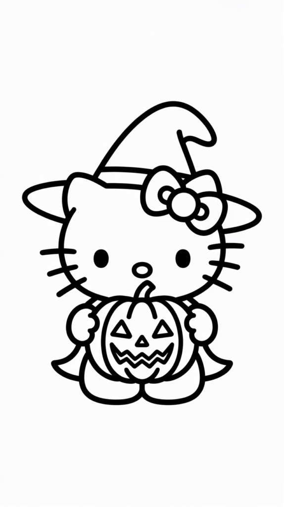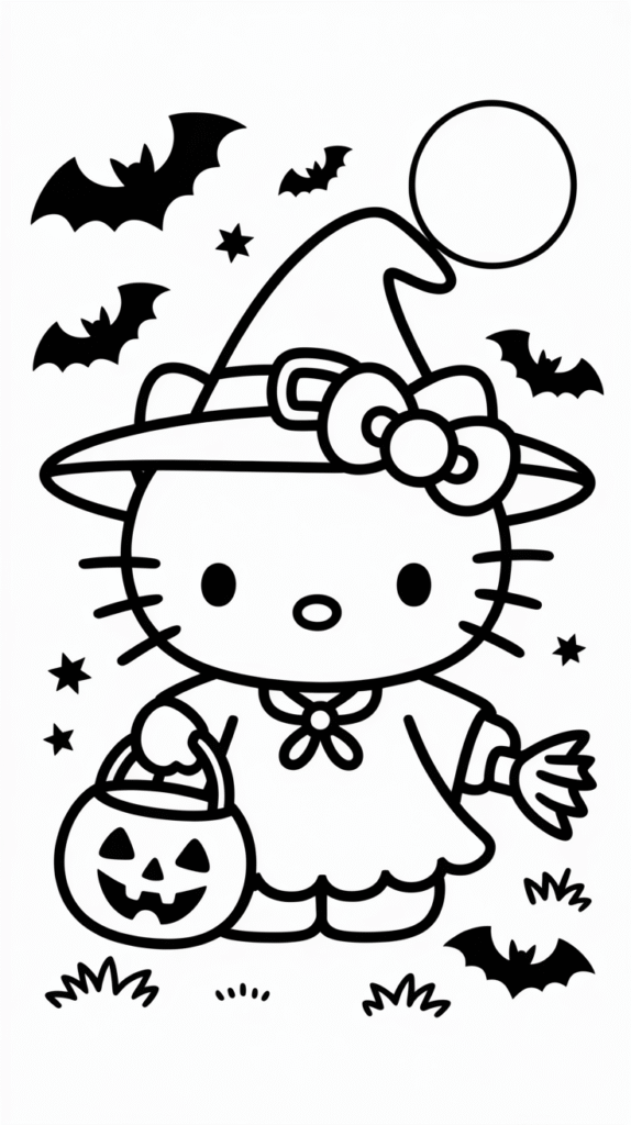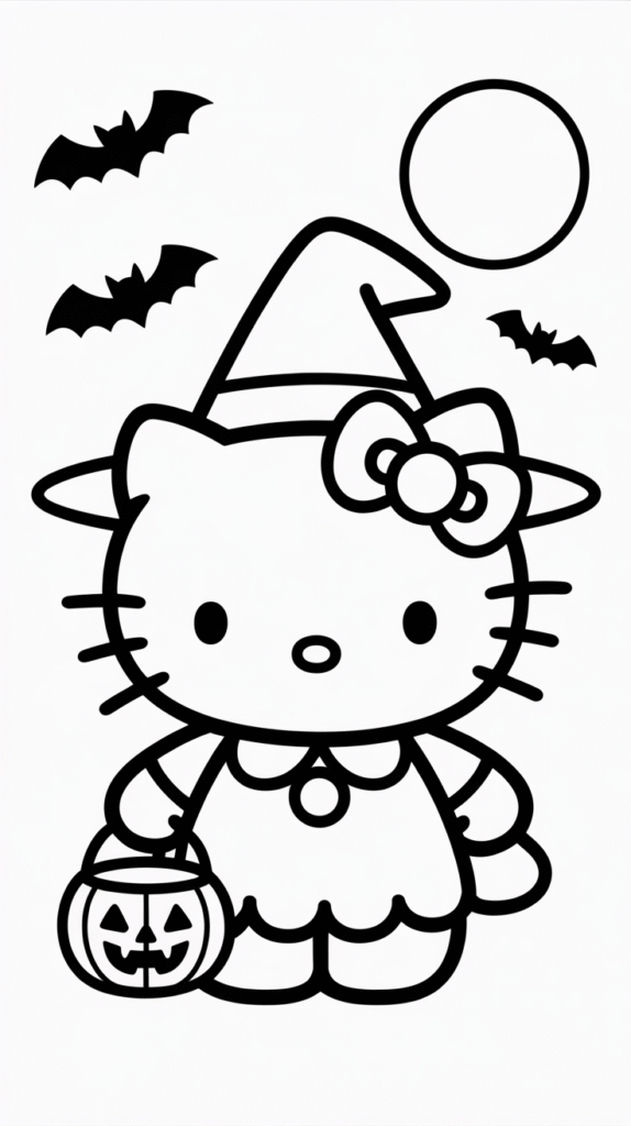 ๐ŸŽƒ 1. Halloween Hello Kitty Coloring Pages