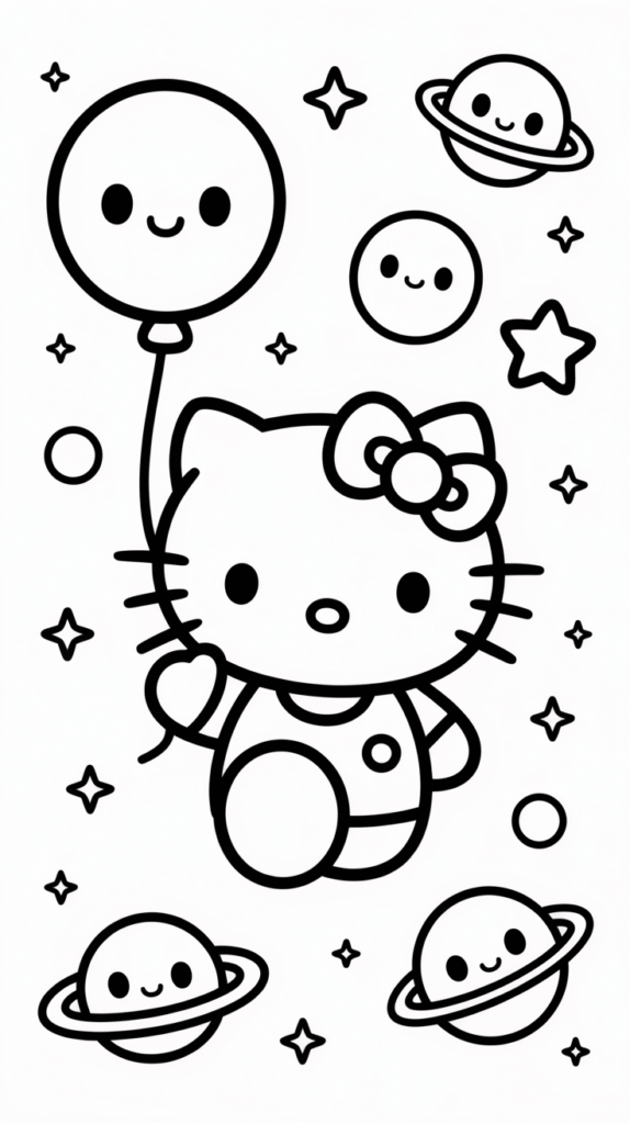 ๐ŸŒŒ 5. Galaxy Hello Kitty Coloring Pages