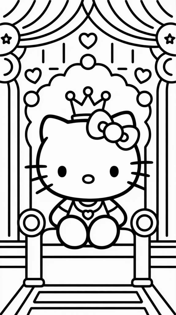 : Princess Hello Kitty, kawaii coloring book, royal Hello Kitty theme