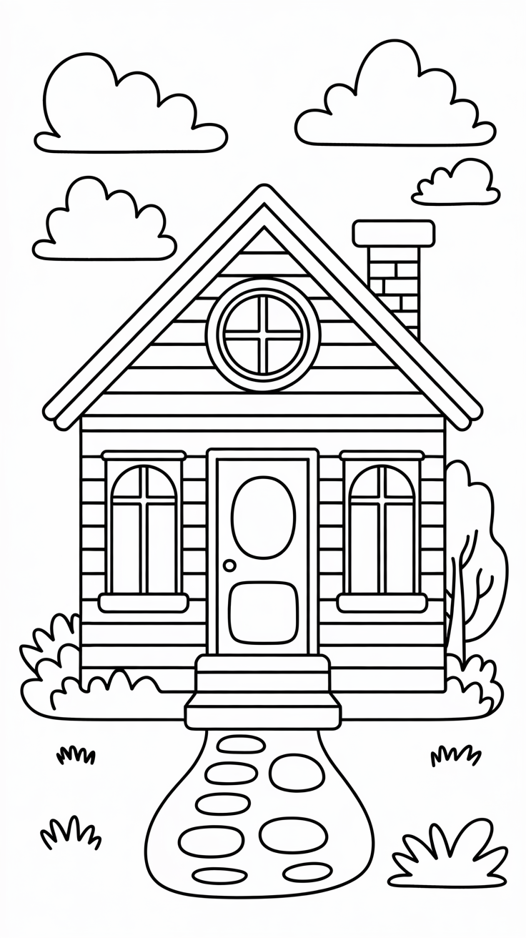 #HousesColoringPages #ColoringForKids #PrintableColoringPages #SimpleColoringSheets #CottageColoring #KidsActivities