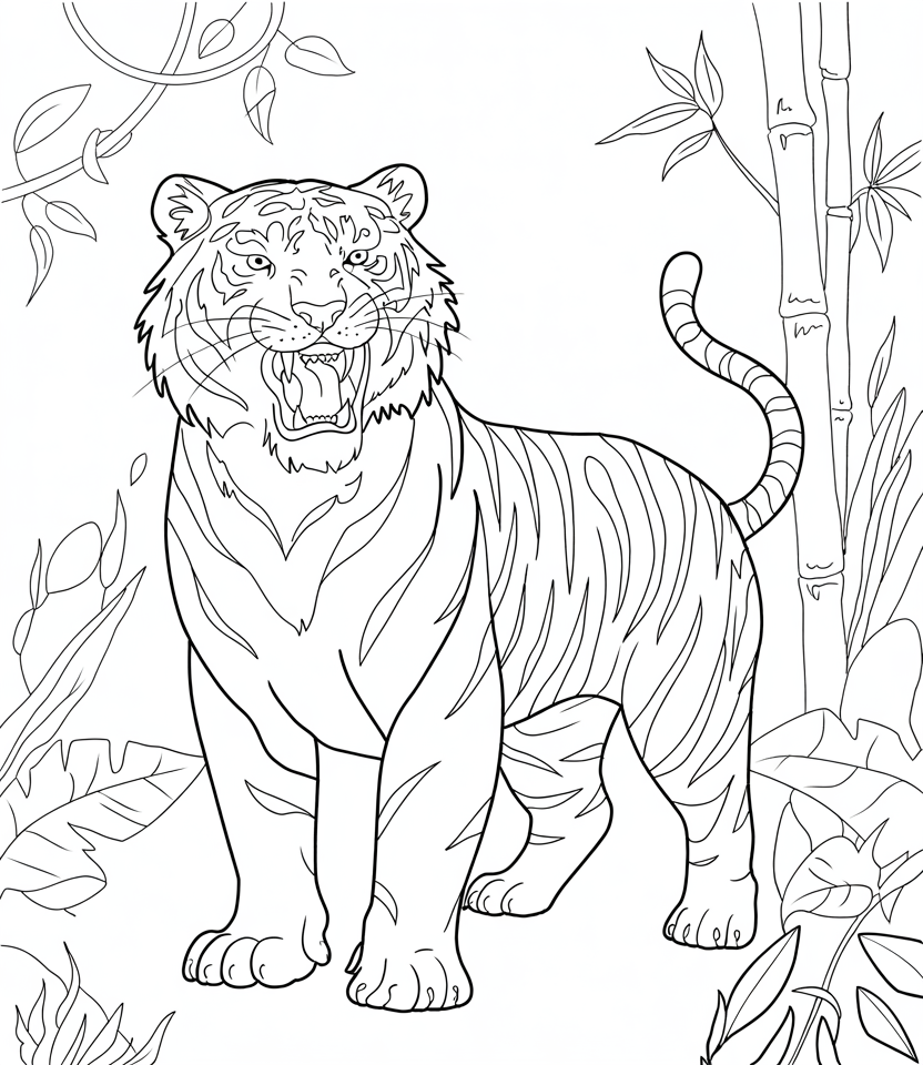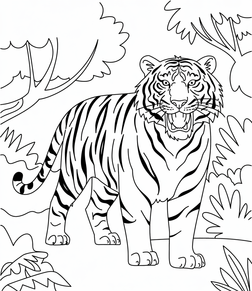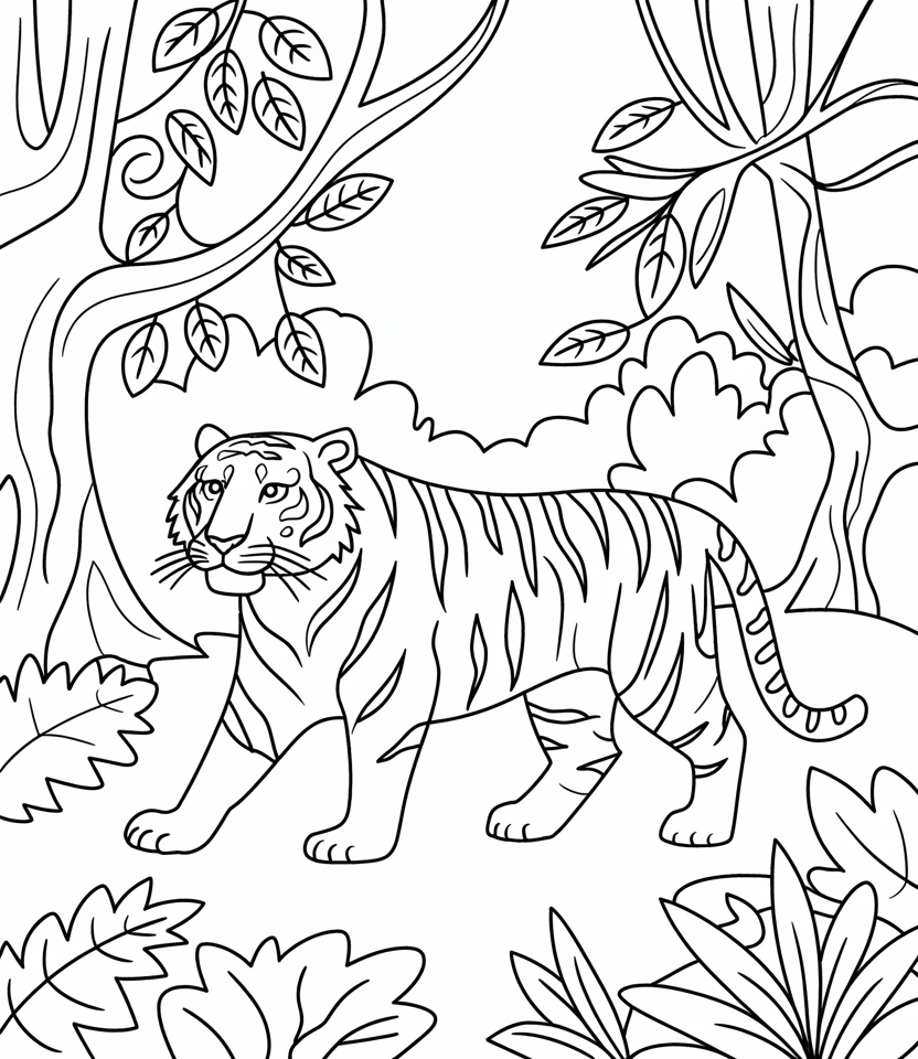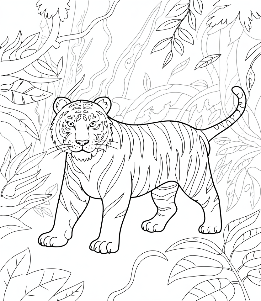 - ๐๏ธ Tiger in Jungle Coloring Pages โ Tigers in their natural habitat.