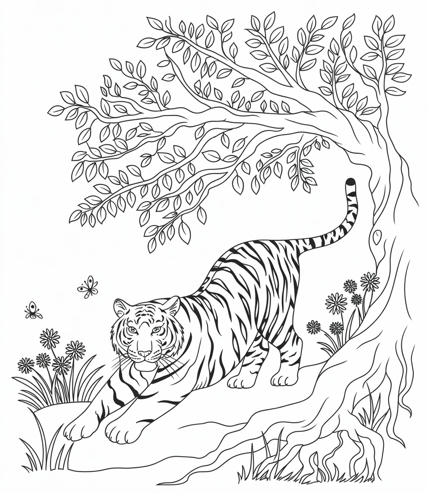 Adults also enjoy tiger coloring pages for stress relief and mindfulness. Coloring a powerful tiger can be a relaxing way to unwind after a long day.