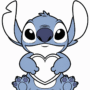 Stitch and Lilo dancing hula on the beach, line art style coloring page